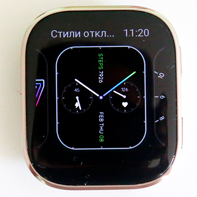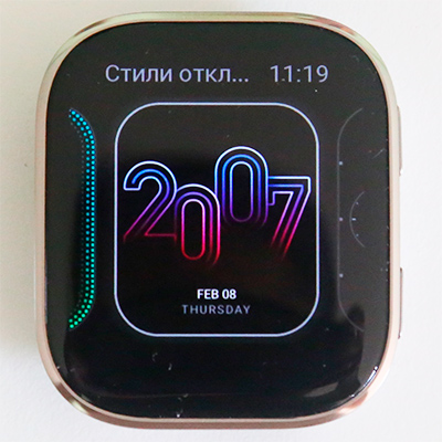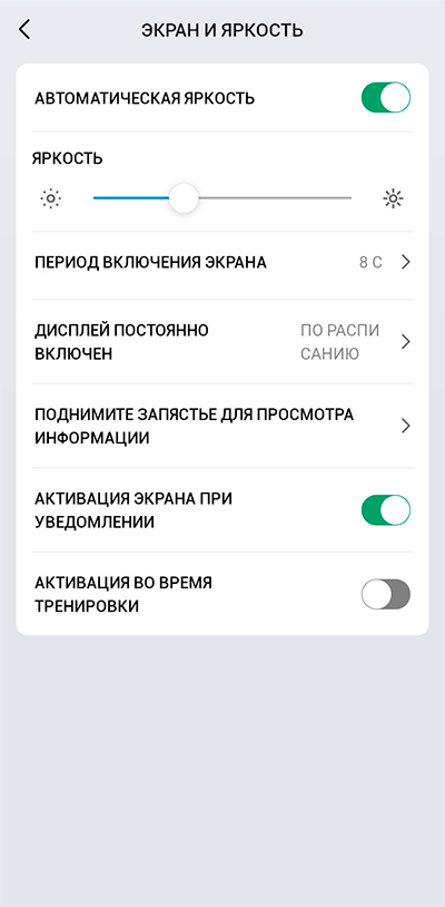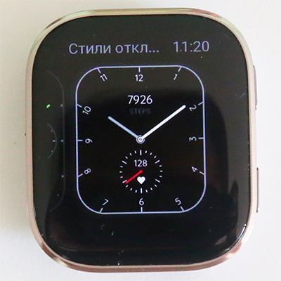 По поводу режима всегда включенного экрана. Он здесь есть, довольно гибко настраивается (это я показал выше в настройках устройства на телефоне), также вы можете выбирать между собственным режимом AOD установленного циферблата, или же можете выбрать какой-то из предустановленных.