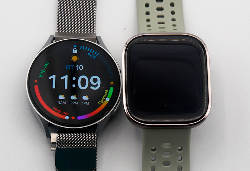 Размер дисплея - немаленький, вот они в сравнении с моими часами Samsung Galaxy Watch7.
