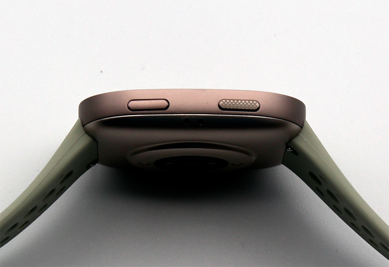 Корпус часов выполнен из алюминиевого сплава, края дисплея слегка скруглены.