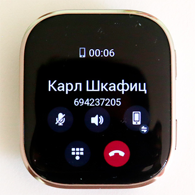 Входящий телефонный звонок и разговор с часов. Исходящие звонки через телефон тут тоже доступны.