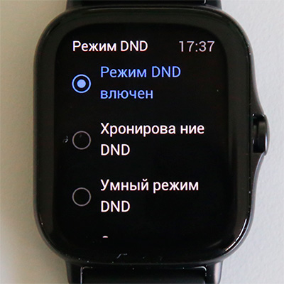 Очень важный момент: режим "Не беспокоить" можно настроить только здесь, в приложении на смартфоне он не настраивается. Здесь можно выставить "умный режим" (уведомления вырубаются, когда смартфон в режиме "Не беспокоить") или включение режима "Не беспокоить" по расписанию.