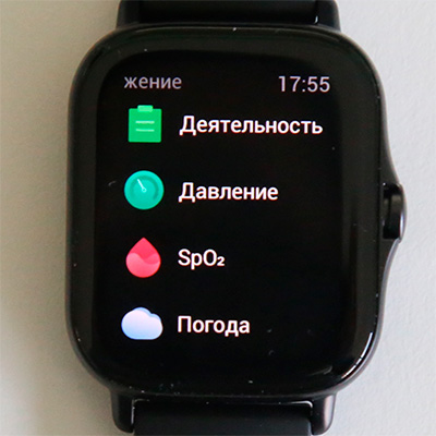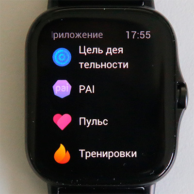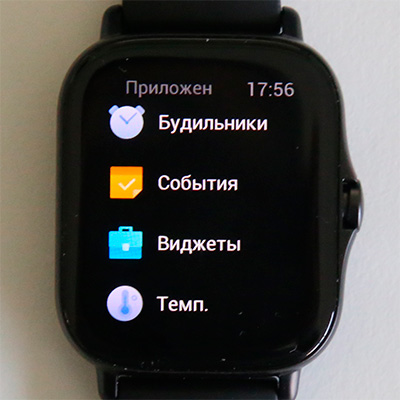 Возвращаемся к циферблату. Единственная кнопка вызывает список приложений. Вот они все.