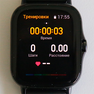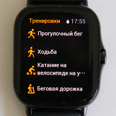 Очень важный момент! Отслеживание тренировки, в отличие от умных часов Huawei и умных часов некоторых других производителей, здесь (как и у GTR 2 и Zepp Z) может вестись параллельно с выполнением других приложений. То есть вы можете запустить выполнение тренировки, нажать кнопку вызова списка приложений и спокойно запустить какое-то приложение - оно будет работать, а тренировка продолжит отслеживаться в фоне. У Huawei Watch, например, если во время отслеживания тренировки нажать на кнопку списка приложений, то появится окно остановки тренировки.