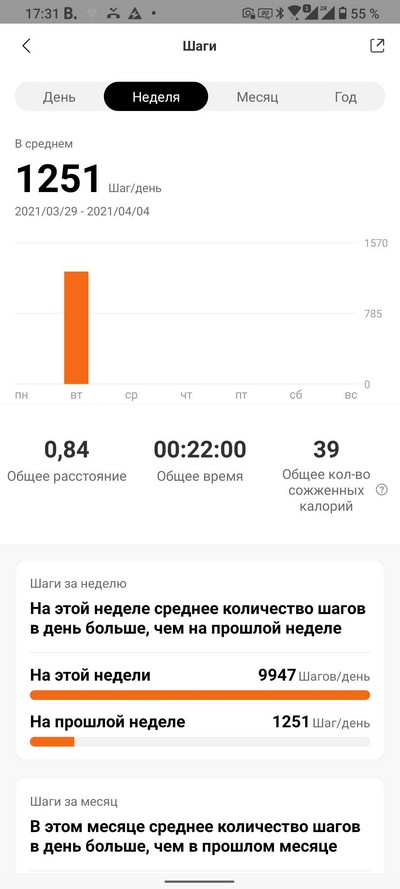 Ну и, как обычно у Amazfit, здесь есть проблемы с информированием, например, о пройденном расстоянии: такая опция включена, а не информирует даже просто вибрацией.