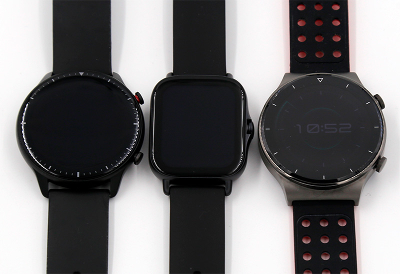 Ну и вот эти часы рядом с Amazfit GTR 2 (слева) и Huawei Watch GT 2 Pro (справа).