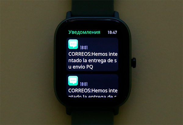 Развернутое уведомление. Надо сказать, что на таком дисплее уведомления читать не в пример комфортнее, чем на круглых часах.
