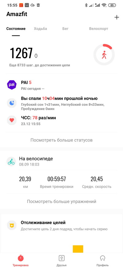 Мониторинг: сон, физическая активность, тренировки, сердечный ритм