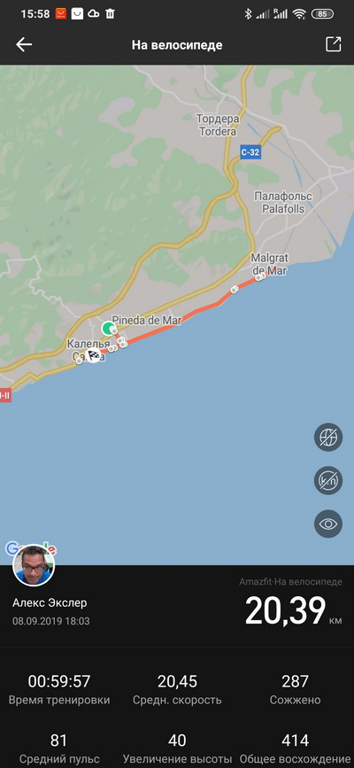 Из спортивных режимов тестировал только ходьбу и велосипед. Велосипед - более или менее похоже в сравнении с велокомпьютером, по ходьбе в сравнении с часами Garmin Vivoactive 3 километраж плавал очень несильно, а вот с количеством шагов расхождение что с Garmin, что со смартфоном, который с Garmin показывает близкие результаты, было очень серьезное: эти часы занижали шаги фактически раза в два. Впрочем, меня количество шагов вообще не волнует, меня волнует километраж, а здесь он подсчитывался нормально, равно как и скорость передвижения (это все измеряется с помощью чипа GPS).