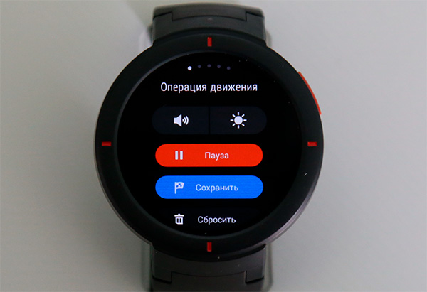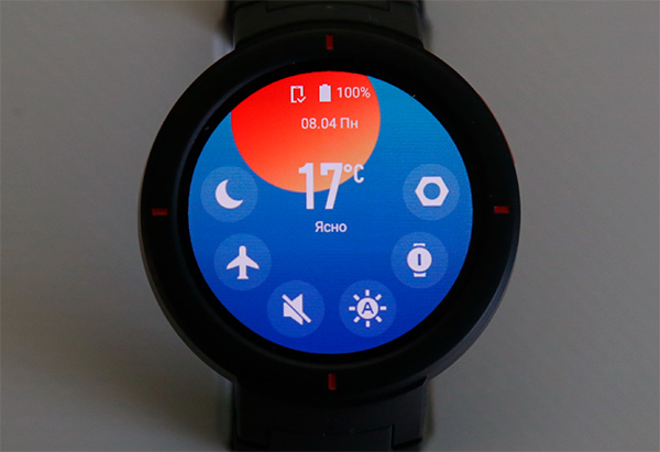 Там можно перевести часы в режим "Не беспокоить", в режим "В самолете", выключить звук, настроить яркость дисплея, выключить или перезагрузить устройство, перейти в настройки.