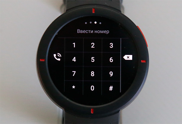 Виджет "Телефон". Список контактов (со смартфона), которые можно вызывать прямо с часов, история звонков, набор номера. Часы имеют свои динамик и микрофон, так что вызовы или прием вызовов (приходящих на смартфон) можно делать, не доставая смартфон. Слышимость не сказать что очень хорошая, но пользоваться вполне можно.