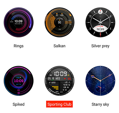 Система проприетарная, циферблаты по умолчанию - только те, что поставляются с часами. И их не так уж и много - вот полный комплект.