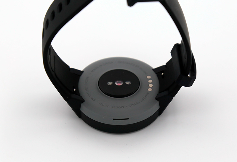 Корпус Amazfit Verge выполнен из ударопрочного пластика очень хорошего качества. Устройство позиционируется как спортивные часы, ну и на руке смотрится как типичные спортивные часы. Дизайн слегка интереснее, чем, например, у Garmin Vivoactive, но те же Huawei Watch GT смотрятся заметно эффектнее.
