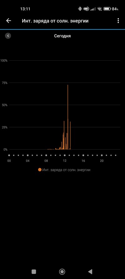 Главная страница настроек часов, интенсивность заряда от солнечной энергии.
