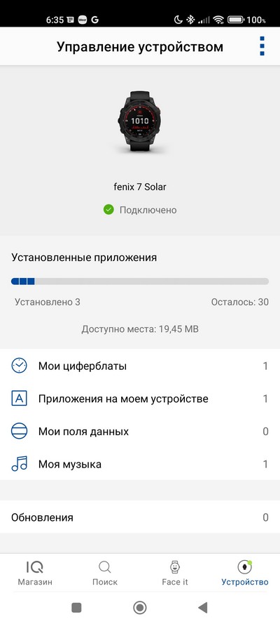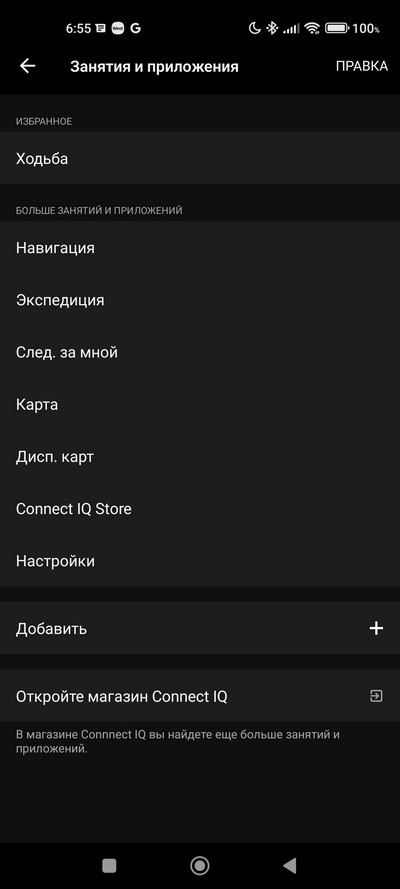 Теперь давайте смотреть, как работа с часами выглядит в приложении Garmin Connect.
