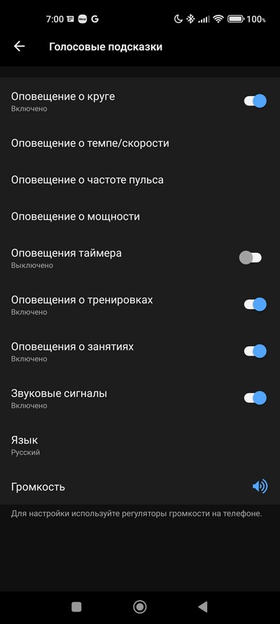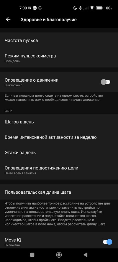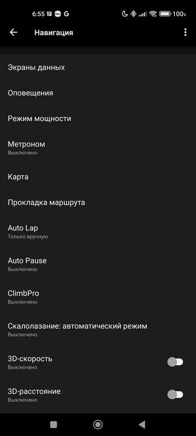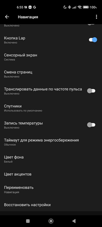 Настройки - тренировки, уведомления, датчики, карты, музыка, беспроводная связь, голосовые подсказки, профиль пользователя, отслеживание и безопасность, здоровье и благополучие, навигация, диспетчер энергопотребления, системные настройки. В настройках системы кроме всего прочего настройки подсветки для спорта, сна и обычного использования.