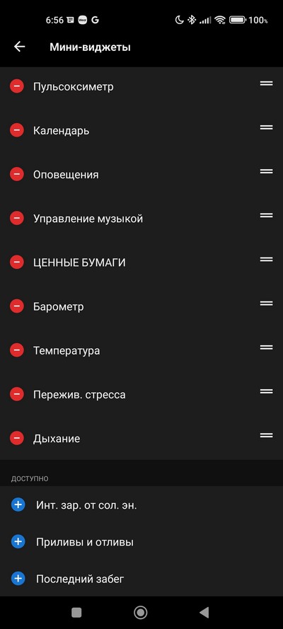 Там же в конце списка пиктограмма настройки виджетов, где можно убирать одни и добавлять другие (в приложении это также делается).