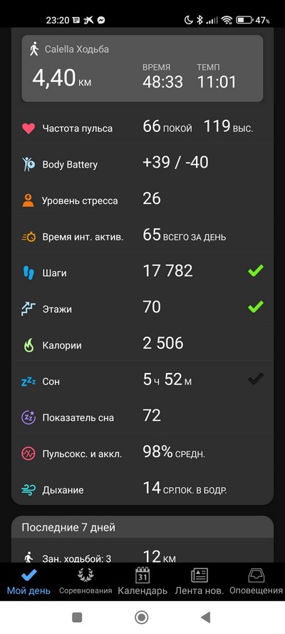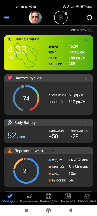 Теперь переходим к данным пользователя, которые записываются часами и демонстрируются в приложении Garmin Connect.