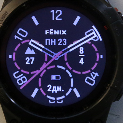 На фото ниже яркость экрана Fenix 7 выставлена на полную, а по умолчанию она выставляется на 20% (чтобы не сажать батарею), и яркость при этом значительно ниже.