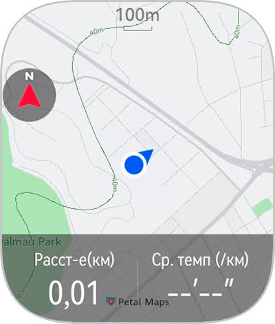 Из дополнительных приложений там есть программа с картами, также есть приложение, которое вроде бы должно показывать навигацию с Карт Гугла на смартфоне: я надеялся, что оно умеет показывать навигацию по карте, как это делают часы на Wear OS, но после непростых танцев с бубном (там надо на смартфон ставить Huawei App и из него ставить приложение Navigation) оказалось, что это приложение дает только текстовые подсказки, а это совершенно неинтересно.