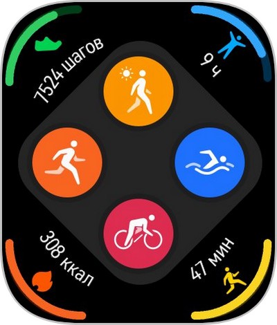 Также здесь есть приложения "Будь в форме" и "Сводка здоровья", которые дают комплексную оценку состояния здоровья.