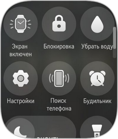 От циферблата нажатие верхней кнопки - список установленных приложений. Он может выводиться сеткой с пиктограмами.