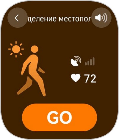 Секундомер. Он здесь правильный - в том смысле, что когда вы запускаете секундомер, то если вы сами не возвращаетесь к циферблату, то секундомер работает на переднем плане и экран не гаснет. Если же вы переходите к циферблату, то там соответствующим значком показывается запущенное в фоне приложение, по нему можно щелкнуть - и перейти на него.