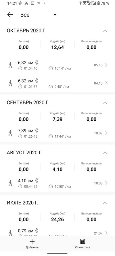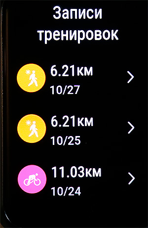 Тренировки все хранятся, по каждой из них можно получить полный набор информации.