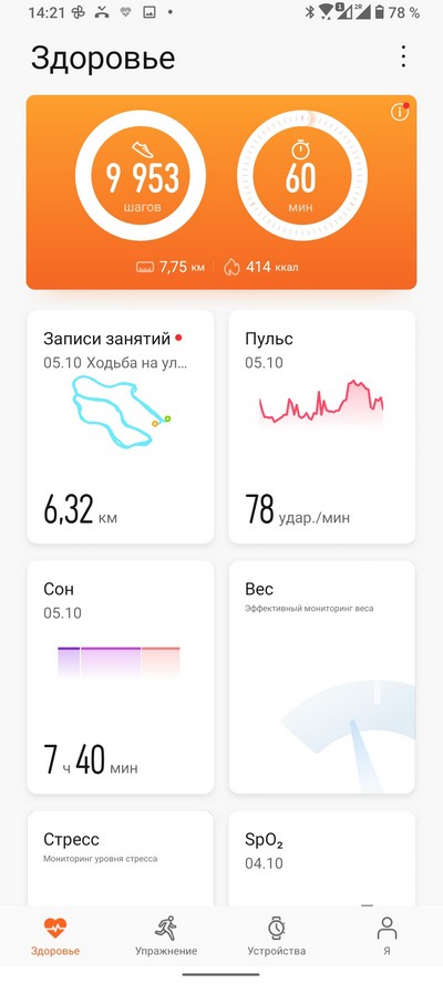А теперь давайте посмотрим, как это все выглядит в приложении Huawei Health.