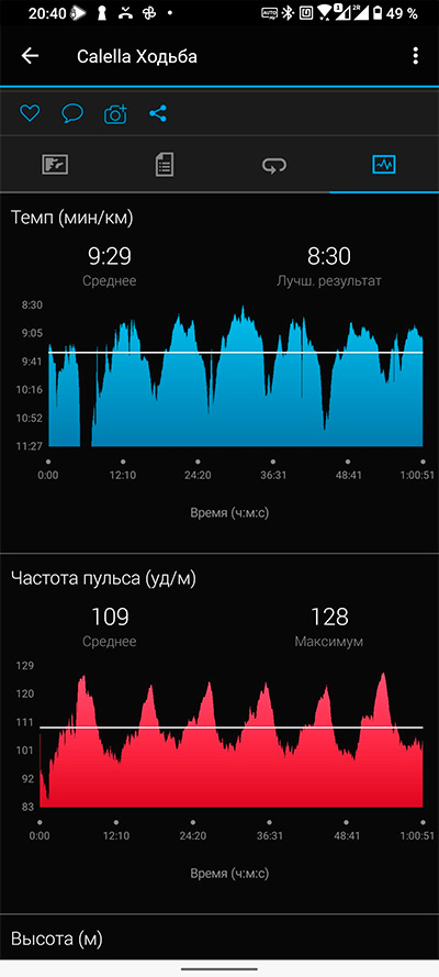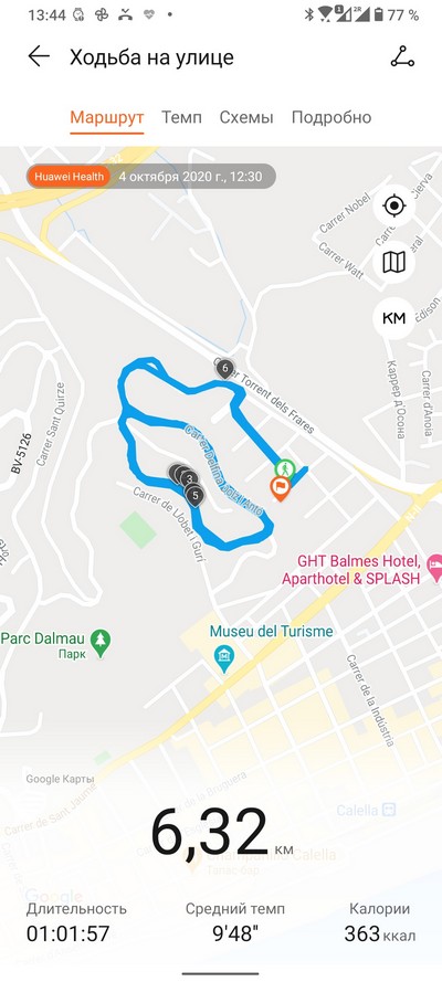 В процессе тестирования часы работали без каких-либо проблем. При отслеживании активности один-единственный раз на хорошо промеренном маршруте часы вдруг стали несколько завышать пройденный километраж и на участке в 6,32 км выдали аж 6,93 км, что уже было сильным расхождением. Но у меня было подозрение, что там просто был какой-то сбой с определением GPS, потому что больше ничего подобного не было, тем более что я несколько раз сравнивал результаты с Garmin Vivoactive 3, и там результаты были очень похожие.