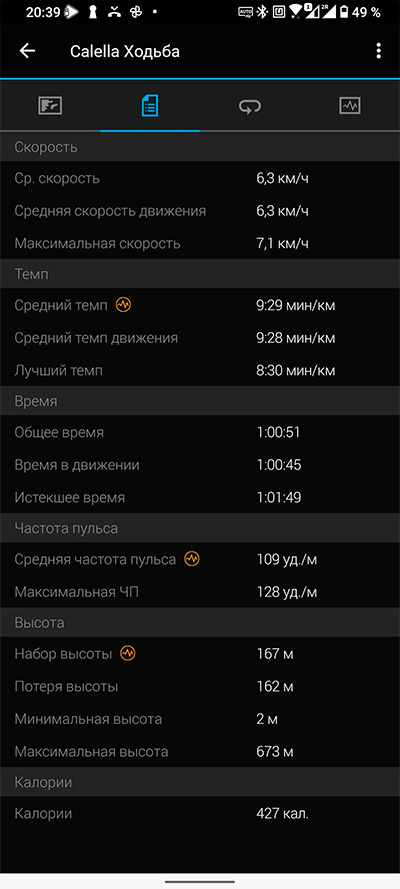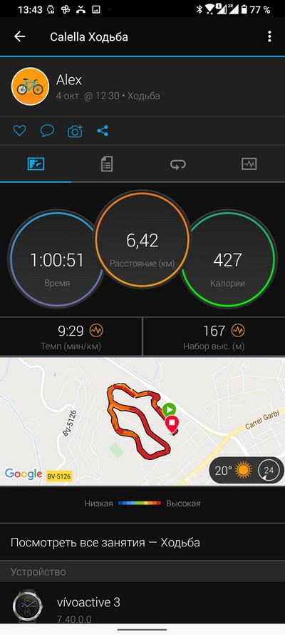 Ну и для сравнения - тот же маршрут в то же время в часах Garmin Vivoactive 3 со всеми подробностями.