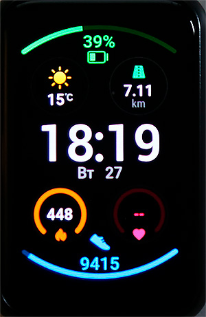 Если сравнить дисплей этих часов с фитнес-браслетом, то тут как будто два дисплея фитнес-браслета склеили в один.