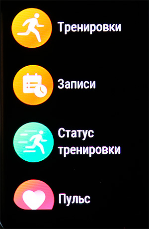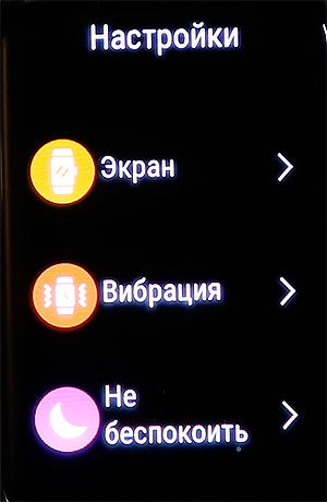 Настройки: экран, вибрация, не беспокоить, настройки тренировки, система.