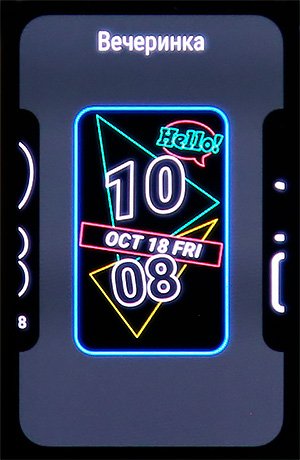Возвращаемся к циферблату, свайп влево (или вправо) - избранные приложения.