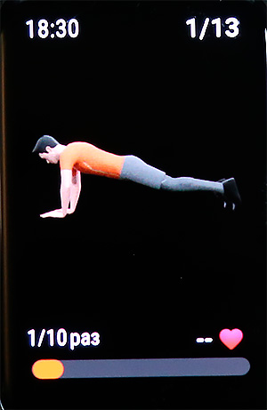 Здесь есть 12 видов тренировок с анимированными подсказками, включающих демонстрацию 44 упражнений. Это очень интересно выглядит - прям видеокурсы с тренировками в ваших часах.