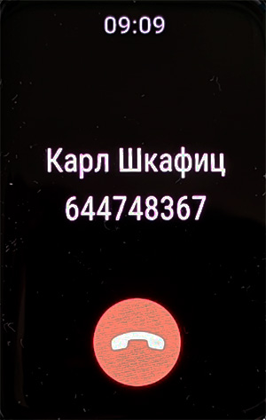 Информация о входящем звонке. С часов звонок можно только сбросить.