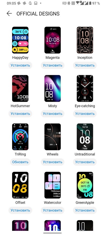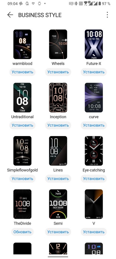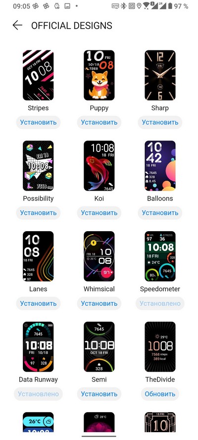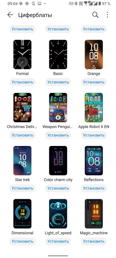 Несмотря на специфичность формата корпуса, вариантов циферблатов - полно: их там где-то под сотню и они - на любой вкус (я покажу ниже, когда будем рассматривать программу на смартфоне).
