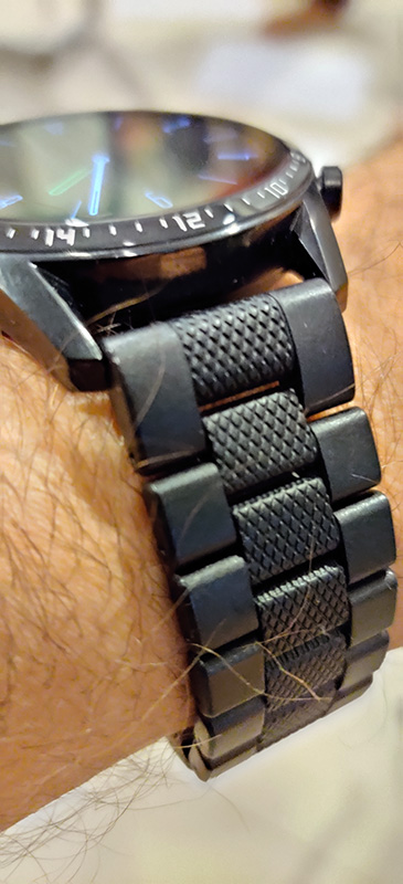 Границы стекла дисплея выровнены вровень с безелем, причем само стекло еще и слегка возвышается над безелем (разработчик назвал это 3D-стеклом), создавая очень интересный зрительный эффект. Управлять такими часами очень удобно, потому что палец при свайпе не упирается в безель.