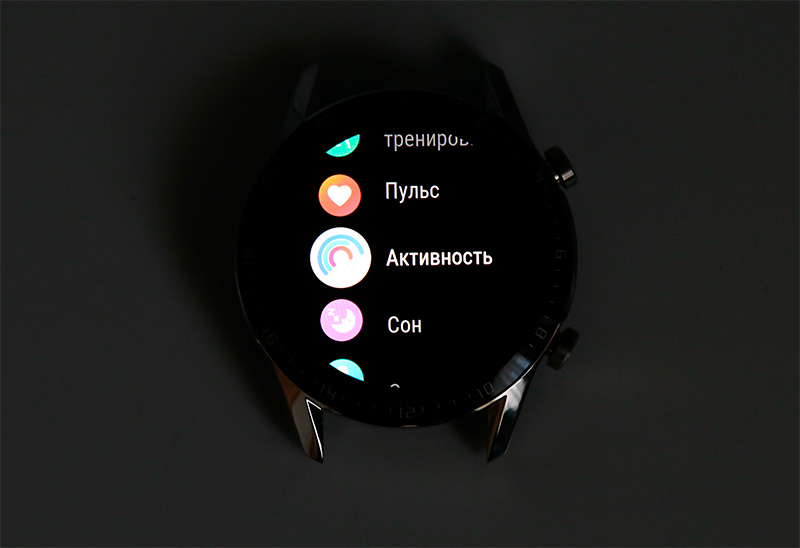 Экран здесь отличного качества, и мне показалось, что картинка здесь даже лучше, чем у Huawei Watch GT. На стекле есть олеофобное покрытие, так что от прикосновения пальцев стекло заляпывается очень несильно.