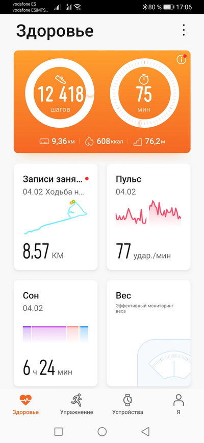 Теперь поговорим о приложении Huawei Health.