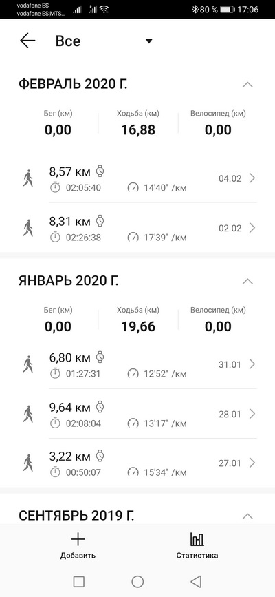 Общие данные по ходьбе и велосипеду (из того, что вообще измерялось на данных часах).