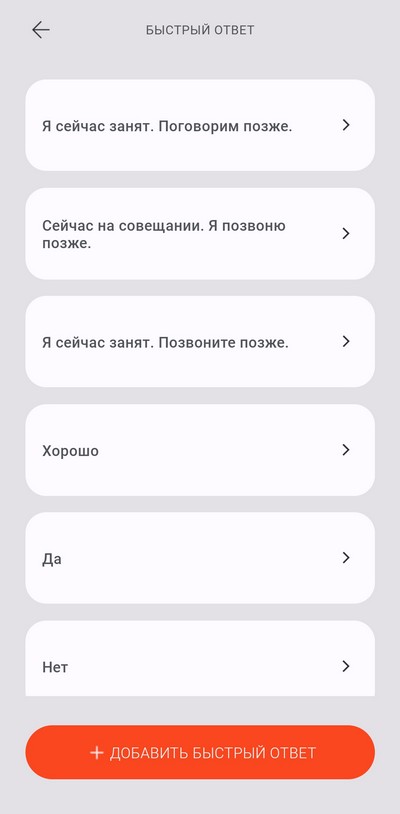 Еще настройки и быстрые ответы.