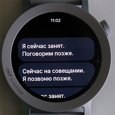 Свайп вниз - область уведомлений. Их можно листать, разворачивать на весь экран, отвечать на них предустановленными сообщениями, которые редактируются в приложении. (В каких-то обзорах почему-то пишут, что они не редактируются - еще как редактируются.)