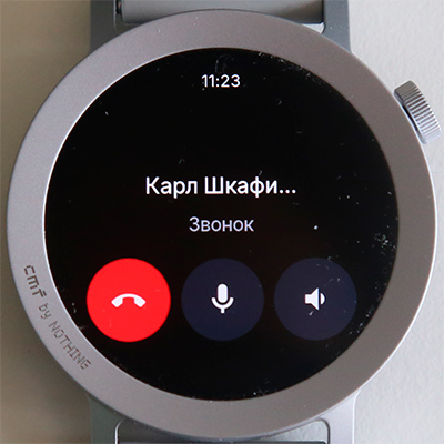 Входящий звонок и режим разговора с часов. Слышимость хорошая, меня абоненты тоже слышали хорошо.