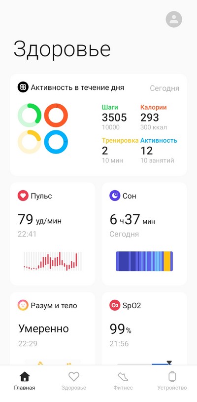 Мониторинг: сон, физическая активность, тренировки (100 видов), сердечный ритм, оксигенация крови, температура руки, ЭКГ