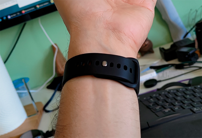 "Модный ремешок" - это просто какая-то трагедия! Мне как-то уже попадался подобный ремешок на подделке под Apple Watch, но там пластик был более мягкий и управляться с тем ремешком было заметно проще. Здесь же - ужас какой-то: чтобы одной рукой вставить торчащий шпенек в нужное отверстие - с этим нужно как следует повозиться. И после этого вам захочется сказать немало горьких слов, потому что когда вы будете заправлять торчащий хвост ремешка в соответствующее отверстие, то шпенек немедленно снова выскочит.