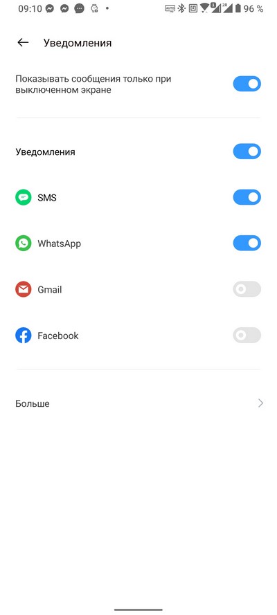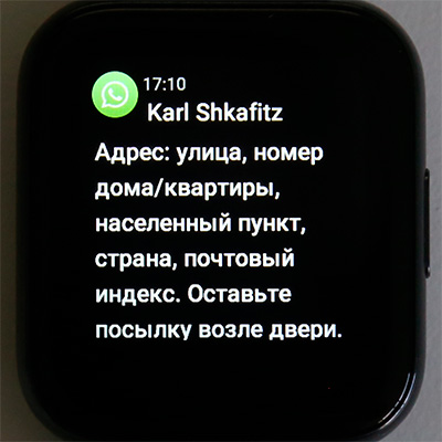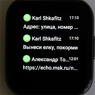 Свайп вниз от циферблата - список сообщений со значками приложений, где можно нажать на конкретное сообщение и прочитать его целиком.