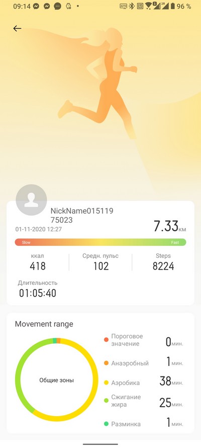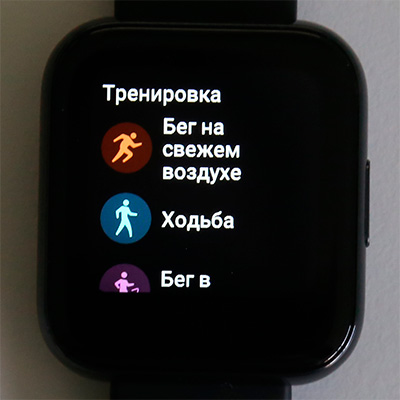 Из тренировок поддерживаются: бег в зале, аэробные тренировки, футбол, пешие прогулки, настольный теннис, велотренажер, бег на улице, крикет, велопрогулка, силовая тренировка, йога, баскетбол, бадминтон, эллипсоид.