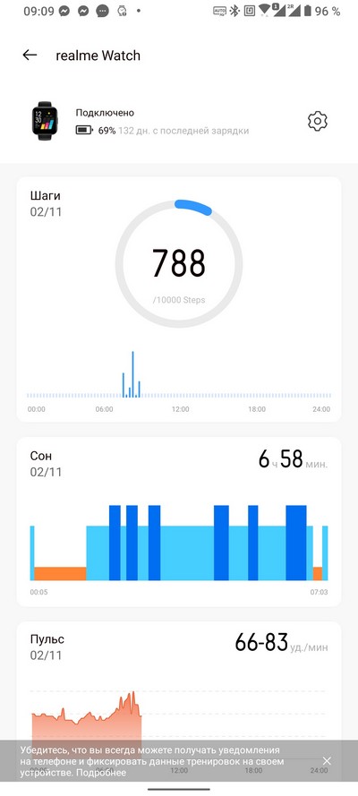 Мониторинг: сон, физическая активность, тренировки, сердечный ритм