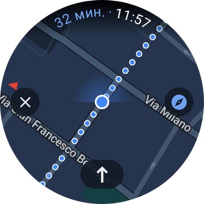 Кстати, если на смартфоне запущен маршрут на карте Google, то его можно отслеживать прямо на часах - это очень удобно!
