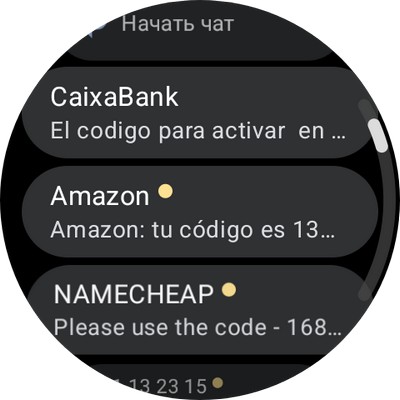 Свайп от циферблата вправо - уведомления: SMS, уведомления приложений и так далее.